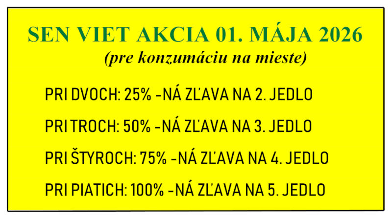 Nájdete u nás pestrú ponuku čerstvých a ľahko stráviteľných jedál, každé jedlo sa vždy poctivo pripravuje samostatne a vďaka dobrej organizácii práce čakanie na jedlo je relatívne krátke. V rámci denného obedového menu Vám predstavujeme tiež rôzne chutné vietnamské pouličné jedlá a u nás sa chutne najedia aj zákazníci s potravinovou intoleranciou (vegetariáni, vegáni). Ponúkame naše priestory pre akcie ako sú oslavy narodenín, promócie, teambuildingy… (k dispozícii je salónik pre 10 osôb alebo celý podnik pre 30 osôb).
